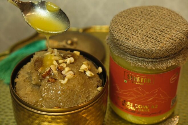 Ghee is considered a sacred food and is used both as a source of nourishment and significance in a ritual in Hinduism. In Hindu practices, during a Havan (fire ceremony) ritual and puja rituals, ghee is widely used. This is thought to heal the environment and bring about positive space. Ghee lamps are looked at as an illuminating light against the evil darkness in a person’s pursuit of attaining knowledge. Ghee is also spread on the sacred fire in Vedic rituals to worship it in a symbolic sense.